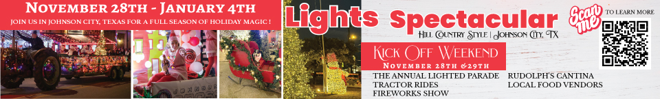 This festive display illuminates the banks of the Llano River from 6-9 p.m. nightly at Llano’s popular Badu Park. Admission is free.