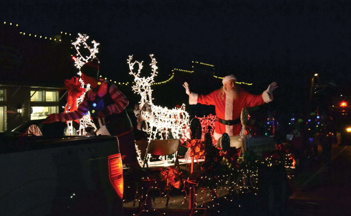 Colorful floats and walkers make their way down Main Street to the entrance of Marble Falls’ Walkway of Lights at Lakeside Park, where families can continue the fun by strolling through the dazzling display or gliding across the nearby ice rink.